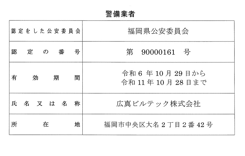 | 加盟団体 | 福岡総合ビル管理事業協同組合、福岡県ビルメンテナンス協会、福岡県警備業協会 |